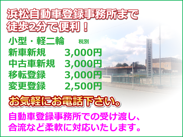 (陸事や軽自動車協会に近い弊社浜松インター前事務所ではございません。)